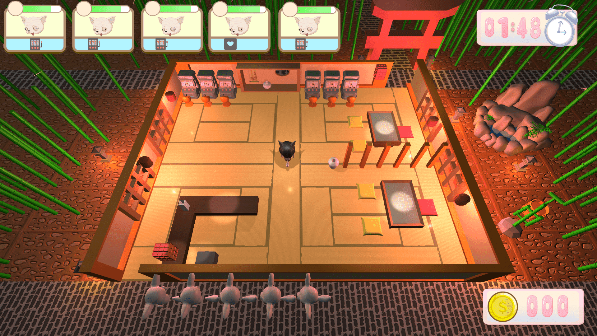 將顧客送走後,就能夠賺取金錢,同時也需要注意顧客的耐心值以及場景中的整潔度,這些因素都會影響到結算時是否能通關獲得3顆星。