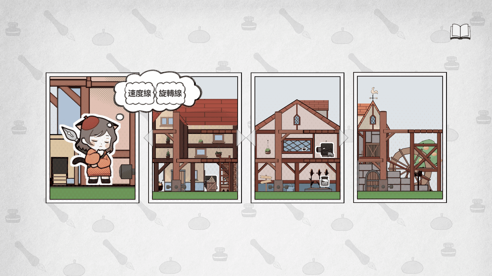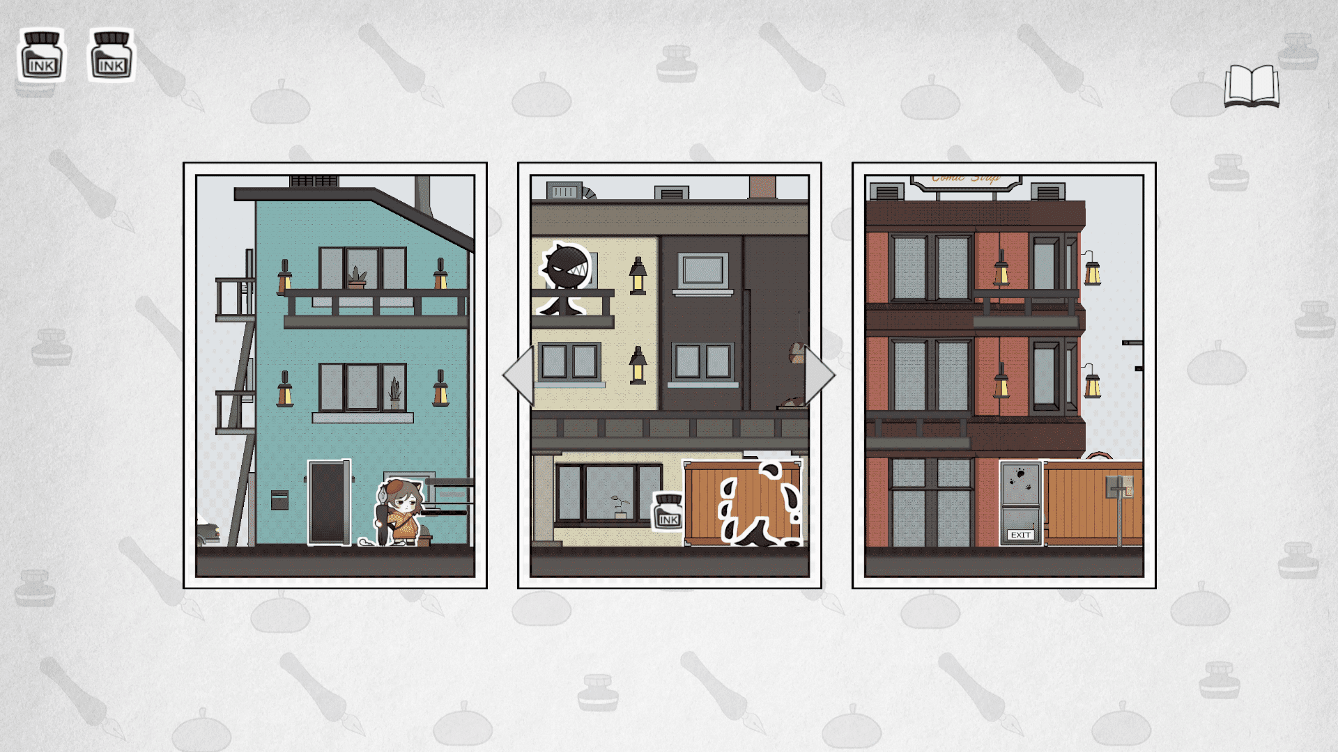 在不同的漫畫格子中,透過旋轉2D視角,收集散落在世界的墨水進行遊戲,並結合漫畫的效果線來解開謎題。